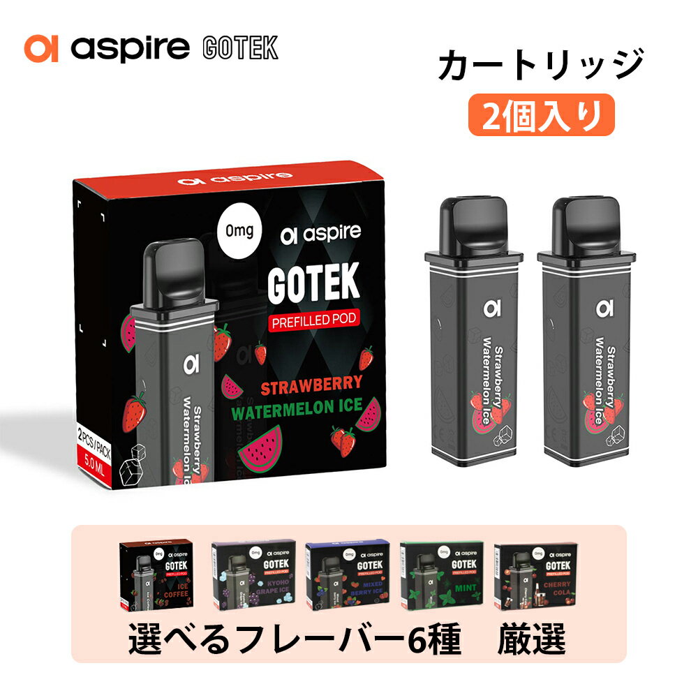 Aspire社より、Gotek(ゴーテック)S Gotek X Gotek X2 Gotek Proの専用 リキッド充填済み 使い捨て‘カートリッジ 2箱(2個/箱)セットです。 ●充填済みの使い捨てタイプでお手軽に扱い可能 本品は初めからリキッドが充填されており、使い捨てタイプのカートリッジとなります。頻繫に充填する必要がなくなり、カートリッジごとを交換するだけでお手軽にGotekシリーズの風味を味わえます。 ●大容量5mlで約1500回吸引可能、コスパ抜群! 5mlのPODカートリッジ1つで約1500回吸引が可能です!紙巻きたばこに換算すると100~150本相当も吸えることになって、コスパ抜群! ●厳選されたフレーバーをお選びいただけます 様々なフレーバーから厳選された6つの味わいをお選びいただけます!巨峰グレープ、ストロベリースイカ、アイスコーヒー、アイスミント、ミックスベリーアイスなど、お好みのフレーバーをぜひ味わってください! ※吸引回数は使用状況や環境によって異なります。 フレーバー紹介: ・巨峰グレープ 巨峰の風味を最大限に再現 ・ストロベリースイカ イチゴの甘い香りとスイカの爽やかさが口の中に広がります ・アイスコーヒー 挽きたてのコーヒー豆の香りと清涼感の絶妙な組み合わせ ・アイスミント クールで爽やかな魅力的なミントのフレーバー ・ミックスベリーアイス 多種多様なベリーのミックスで甘味と清涼感と濃厚な果物の香りを同時に体験できる ・チェリーコーラ 清涼感のあるコーラの中にチェリーの香りを混ぜ合わせる ●対応機種はこちらです ●Aspire Gotek S ●Aspire Gotek X ●Aspire Gotek X2 ●Aspire Gotek Pro ●Aspire Gotek Nano 【製品規格】 容量:5.0ml 吸引回数:約1500回/本 【内容品】 ・Gotek 充填済み カートリッジ 5ml 2箱セット4個入り ※セットの場合は2箱、単品は当店別途で購入可能▼こちらの関連商品をチェック▼ 電子タバコ べイプ Aspire GOTEK PRO スターターキット 大人気のGotek pro!アルミ合金製ボディ!1500mAh大容量バッテリーとLEDディスプレイ搭載 電子タバコ べイプ Aspire Gotek Pro 本体のみ 4.5ml繰り返し充填カートリッジとこっちの5ml充填済みカートリッジの両方も対応可能!お好みに合わせて交換! 電子タバコ Aspire Gotek S スターターキット 外見がおしゃれなGotek S!シリーズ互換性ありでコスパ抜群!初心者でも簡単な操作