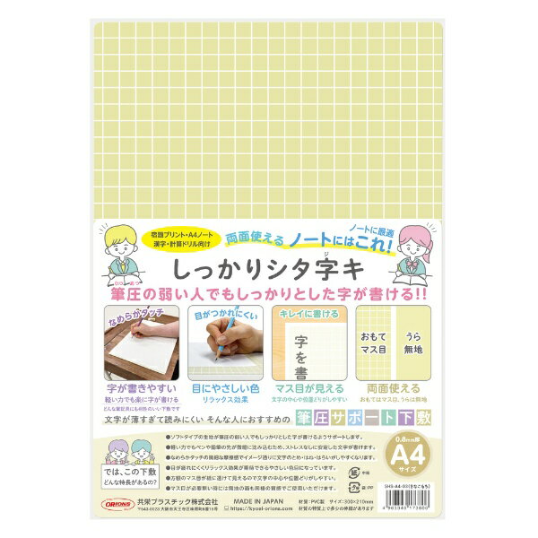 共栄プラスチック|KYOEI PLASTIC しっかりシタ字キ A4判 きなこもち SHS-A4-03
