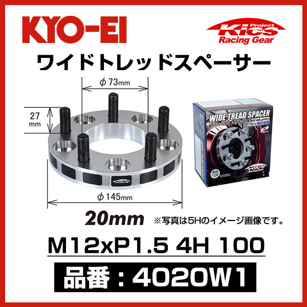 KYO-EI 協永産業 ワイドトレッドスペーサー 【4020W1】 M12xP1.5 4穴 100 厚み20mm 2枚 | キョーエイ KYOEI KICS キックス WIDE TRED SPACER トヨタ ホンダ マツダ ミツビシ ダイハツ車に おすすめ