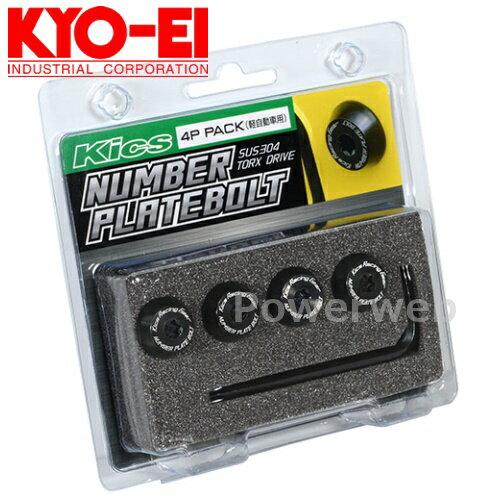 ■商品詳細メーカー:KYO-EI (キョーエイ 協永産業)商品:Kics NUMBER PLATE BOLT 4個入り(軽通自動車) (キックス ナンバープレートボルト ステンレス製 軽自動車用 4個)品番:NPBK4P外径:18mm全長:21mm(首下15mm)カラー:ブラッククロムメッキ入数:4個付属品:専用L型レンチ(1個)・商品説明本体プレートボルトは、耐食性抜群のステンレス製(SUS304)。シンプルな形状で、高級なイメージを演出。カラーは、ブラッククロムメッキ。取り付け取り外しは、盗難抑止トルクス形状。3個入(普通車用)、4個入(軽自動車用)パッケージを設定しました。・注意事項当製品(ボルト)外径サイズはφ18mmです。一部、文字がボルトに掛かる車両があります。ボルトが文字に掛かる場合は、使用できません。また、LEDナンバー灯火プレートは取付け不可な場合がございます。(ネジ首下長さが短い又は、長い場合がございます。)ご購入の際は、現車のナンバープレートを確認してご購入下さい。一部車両には、ネジ首下長さが短い又は、長い場合がございます。ご購入の際は、現車のナンバープレートを確認してご購入下さい。普通車のナンバープレート封印は絶対に取外さないで下さい。■納期について・商品はメーカーさんより、お取り寄せ販売となります。・お手配後、入荷までに約7〜10日(土・日・祝日・その他メーカー休業日除く)ほどお時間を要します。・メーカー欠品、生産中止等で入荷に見込みがございません場合は キャンセルとさせていただく場合がございます。予めご了承ください。■お知らせ送料:無料 (メール便発送)【注意事項】商品の仕様は予告なく変更となる場合がございますので予めご了承ください。【画像について】・メーカーの共通画像を使用しております。・形状はシリーズ、車種により異なります。