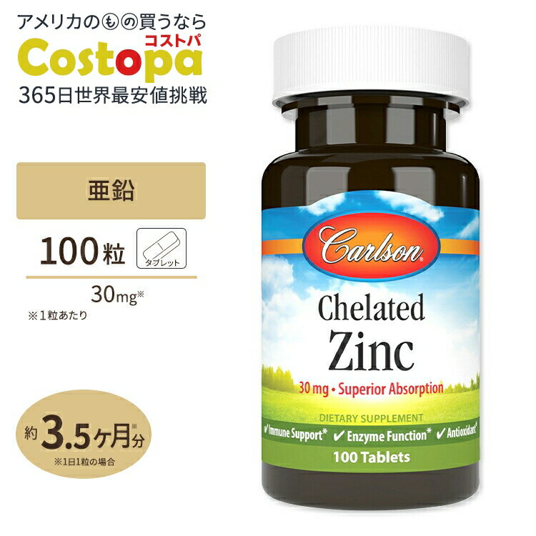 【最大2000円OFFクーポン】カールソンラボ 亜鉛(キレート) 30mg 100粒 タブレット Carlson Labs