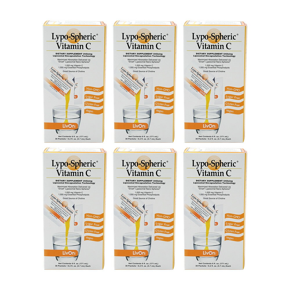 【送料無料】 6個セット ビタミンC 1000mg 30個入り 包み 高濃度 美容 リポスフェリック【LivOn Labs】Lypo-Spheric Vitamin C 1,000 mg 30 Packets