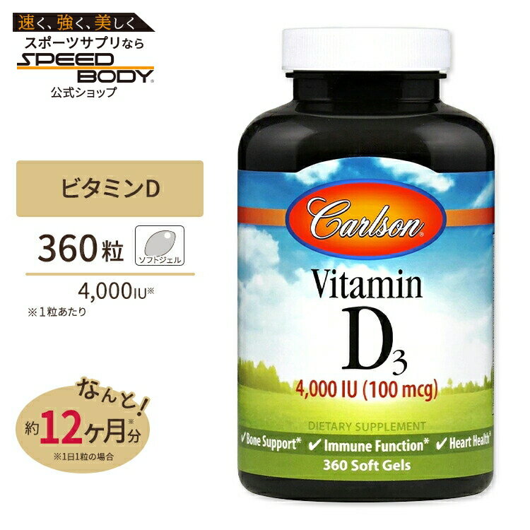 【最大1400円OFFクーポン】カールソンラボ ビタミンD3 100mcg 4000IU 360粒 ソフトジェル Carlson Labs Vitamin D3 100mcg 4000IU 360softgels