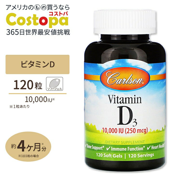 【最大2000円OFFクーポン】カールソンラボ ビタミンD3 10,000IU 120粒 ソフトジェル Carlson Labs Vitamin D3 10,000IU 250mcg 120Softgels