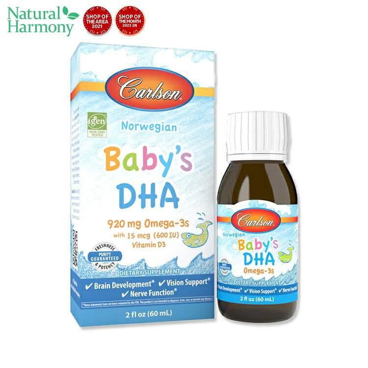 【店内8千円以上1000円OFFクーポン】[栄養たっぷり!赤ちゃんの元気をを育む]カールソンラボ ベイビーズ DHA 920mg オメガ-3s 60ml (2floz) Carlson Labs Baby's DHA Baby's DHA 1100mg Omega 2floz(60ml)
