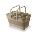 発送について 出荷目安:平日1〜2日以内に発送。 (土日祝の店舗休業日を除く) 沖縄・離島は送料見積りが必要となります。 当店から送料を連絡後、ご了承かキャンセルのご返答をいただくまで出荷は保留となります。 梱包形態 紙袋または段ボール、エアパッキンで梱包 ラッピング不可 同梱について 梱包サイズ:85 梱包サイズの合計が240以上になる場合は大型と同等扱いとさせていただき、送料が必要となります。使い方色々マルチバスケット やわらか素材のたためるバスケット。使わない時はたたんでコンパクトに収納。 フタ部分は取り外してミニテーブルにできます。 バスケット部分には水を溜められるから、キャンプ・アウトドア時に飲み物を冷やしたり、洗い物などにも使用できます。水抜き栓付きだから排水も楽々。 ※水を入れる場合は屋外でお使いください。 持ち運びに便利な持ち手付き。 キャンプやバーベキューなどのアウトドア用にはもちろん、防災用にも。 [使用上の注意] 凹凸や傾斜、滑りやすい床などの不安定な場所では使用しないでください。 落としたり強い衝撃を与えたり、耐荷重以上のものは載せないでください。 分解・改造をしないでください。 組立・分離などの際に指や手を挟まないように注意してご使用ください。 火器類の近くで使用しないでください。 加熱した鍋などを置かないでください。 たわし、磨き粉などを使用すると傷がつきます。 サイズ 組み立て時:約幅46.3×奥行29×高さ21.4cm 折りたたみ時:約幅46.3×奥行29×高さ8.6cm 重量 約1.55kg 容量 約15L 材質 本体・水抜き栓:熱可塑性エラストマー 枠・底・ハンドル・止め具:ポリプロピレン テーブル:ABS樹脂 脚部:鉄、ユニクロメッキ 仕様 耐熱温度:熱可塑性エラストマー・ポリプロピレン/100度、ABS樹脂/80度 耐冷温度:-20度 カラー グリーン、カーキ 生産国 日本
