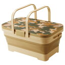 PICK UP BRANDフタがテーブルになるたっぷり入るバスケット 使用後は折りたたんでコンパクトに収納できるバスケット&テーブル。両手で本体をしっかり持って、同時に押し下げると簡単にコンパクトにたためます。広げ方も底を押さえながら本体の左右を交互に引き上げるだけ。 バーベキューなどのアウトドアシーンで荷物を運んだり、中に氷水を入れてドリンクを冷やしたりと大活躍。野菜やフルーツを洗いにも使えます。 バスケットの容量は15リットルでたっぷり入ります。 フタは外すと脚付きのテーブルに早変わり。飲み物を安定して置けるドリンクホルダーも2個ついています。 食べ終わったら水を溜めて食器洗いとしても便利。便利な水抜き栓付きで水抜きも簡単です。 品名 折りたたみバスケット&テーブル ミラーゴ I-582 カラー グリーン/カーキ サイズ 折りたたみ時:約46.3×29×8.6cm 組み立て時:約46.3×29×21.4cm 容量 15L 重量 約1,552g 材質 本体,水抜き栓:熱可塑性エラストマー(耐熱温度:100℃、耐冷温度:-20℃) 枠,底,ハンドル,止め具:ポリプロピレン テーブル:ABS樹脂(耐熱温度:80℃、耐冷温度:-20℃) 脚:鉄,ユニクロメッキ 製造元 ISETO 生産国 日本