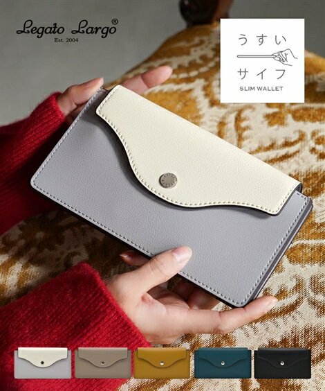 ファッション雑貨 Legato Largo レガートラルゴ うすいサイフ フラップ 長財布 札入れ 薄い バイカラー 札入れ カード カード入れ 旅行 (アクアカルダ)