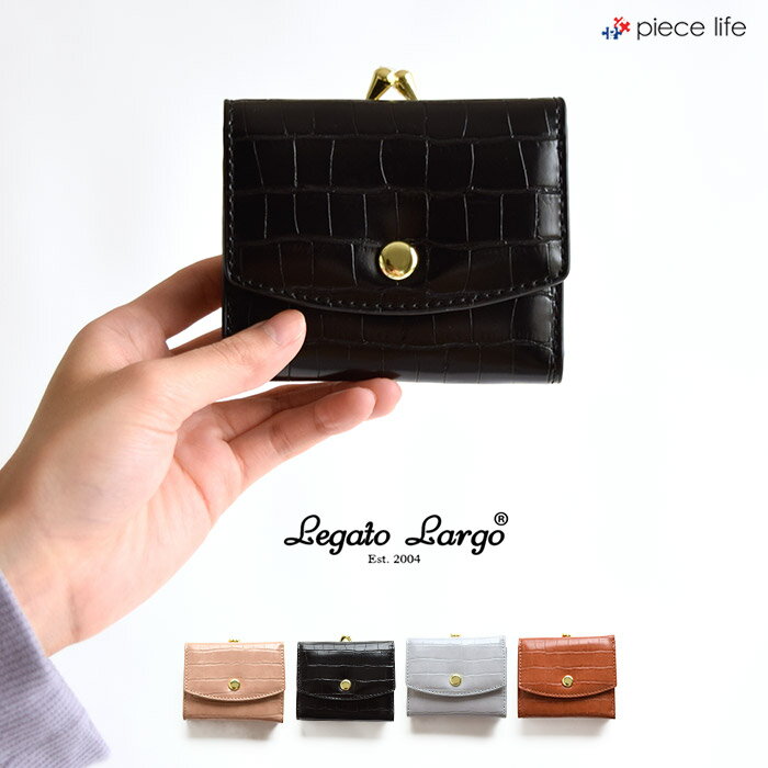 Legato Largo レガートラルゴ Lusso クロコ型押し ガマ口3つ折リ財布 クロコ柄 財布 ミニ財布 3つ折り レディース ブランド LJ-G0841