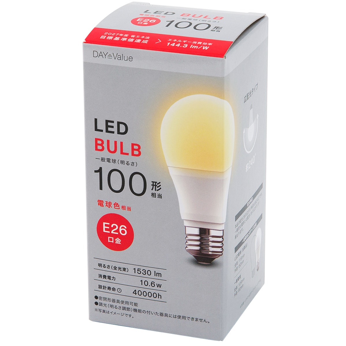 ※現在、お届け日のご指定はお受付出来かねております。 ※配送先住所・カラー・数量などの入力間違いが増えています。ご注文後の注文内容変更はお受付致しかねます。再度ご確認ください。 【昼光色相当】を購入したい方はこちら≫ トップランナー制度対応、2017年度省エネ法目標基準値達成のLED電球です。白熱電球のように広範囲に明るい広配光タイプなので、リビング・ダイニング・キッチン・脱衣所などの照明に最適。口金サイズがE26口金なので、照明器具を替えることなくご使用いただけます。密閉形器具に使用可能。断熱材施工器具には使用できません。(※密閉形器具の種類によって、寸法が合わない、熱がこもる等の要因により、使用できなかったり、寿命が短くなる場合があります。)調光(明るさを調節できる)機能のついた器具には使用できません。安心の5年保証付き!長寿命約40000時間でランプ交換の手間も省けます。★LED電球の特長★・水銀レス:環境に有害な水銀を含みません。・すぐに明るく:スイッチを入れた瞬間に明るく点灯します。・虫が集まりにくい:虫が集まりやすい紫外線領域波長をほとんど出さず、灯具清掃の手間を軽減できます。・ON/OFFに強い:スイッチを頻繁にON/OFFしても劣化せず、寿命が短くなりません。・低UV/低赤外線:紫外線や赤外線をほとんど出さないので、紫外線による色あせや赤外線による熱が気になりません。※昼白色相当・電球色相当は2個入×5箱、昼光色相当は1個入×10箱でのお届けとなります。●10個セット●商品サイズ(cm)直径約6.5×高さ約11.6●重量約195g●材質アルミ、ポリカーボネート、PBT●パッケージサイズ(cm)単品:幅約6.9×奥行約6.9×高さ約13.32個セット:幅約13.8×奥行約6.9×高さ約13.3●口金サイズE26●光色LDA14D-G-10T5:昼光色相当LDA14N-G-10T5:昼白色相当LDA14L-G-10T5:電球色相当●定格消費電力昼光色相当(LDA14D-G-10T5):13.5W昼白色相当(LDA14N-G-10T5):13.6W電球色相当(LDA14L-G-10T5):14.0W●定格入力電流昼光色相当(LDA14D-G-10T5):0.221A昼白色相当(LDA14N-G-10T5):0.237A電球色相当(LDA14L-G-10T5):0.240A●全光束昼光色相当(LDA14D-G-10T5):約1600lm昼白色相当(LDA14N-G-10T5):約1600lm電球色相当(LDA14L-G-10T5):約1520lm●配光角約220度●定格寿命約40000時間●電源100V(50/60Hz共用)●使用場所屋内用●ランプ全体の明るさ一般電球100W形相当●密閉形器具○●エネルギー消費効率昼光色相当(LDA14D-G-10T5):118.5lm/W昼白色相当(LDA14N-G-10T5):117.6lm/W電球色相当(LDA14L-G-10T5):108.6lm/W 最強翌日配送対象商品に関するご案内 最強翌日配送対象商品・対象地域に該当する場合は最強翌日配送マークがご注文カゴ近くに表示されます。 最強翌日配送可能なお支払方法は【クレジットカード、代金引換、全額ポイント支払い】のみとなります。 下記の場合は最強翌日配送対象外となります。 ・15点以上ご購入いただいた場合 ・時間指定がある場合 ・ご注文時備考欄にご記入がある場合 ・決済処理にお時間を頂戴する場合 ・郵便番号や住所に誤りがある場合 ・最強翌日配送対象外の商品とご一緒にご注文いただいた場合 ・お届け先住所文字数が40文字以上の場合お届け先が沖縄・離島の場合、お届け日時のご希望に沿えない場合がございます。予めご了承ください。 ご注文前のよくある質問についてご確認下さい[ FAQ ]