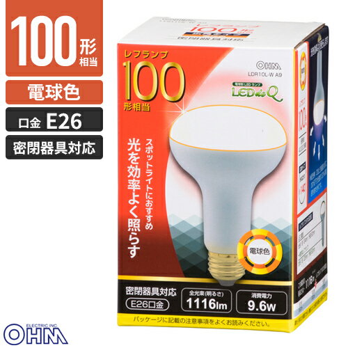 オーム電機 LED電球 レフランプ形 100W形相当 E26 電球色 密閉器具対応 LDR10L-W A9