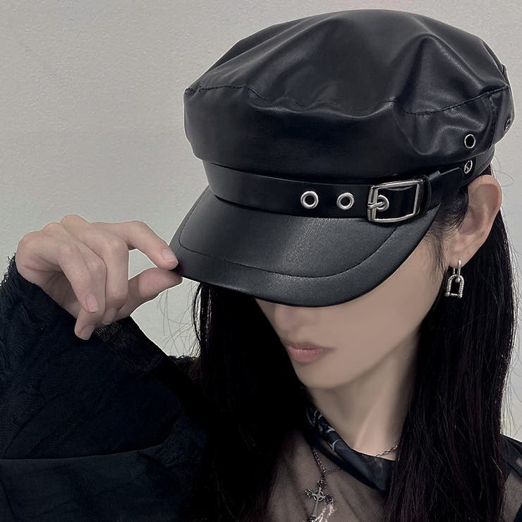 【10%OFFクーポン!11/27(木)1:59まで】ililil MAD MAD【マッドマッド】PUレザーベルトデザインキャスケット/全1色キャスケット PUレザー ベルト 帽子 ヴィジュアル系 V系 黒 ブラック メンズ きれいめ 地雷系 シンプル