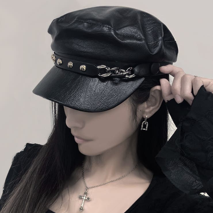 【10%OFFクーポン!11/27(木)1:59まで】ililil MAD MAD【マッドマッド】PUレザースタッズ&チェーンキャスケット/全1色キャスケット PUレザー ベルト 帽子 ヴィジュアル系 V系 黒 ブラック メンズ きれいめ 地雷系 チェー