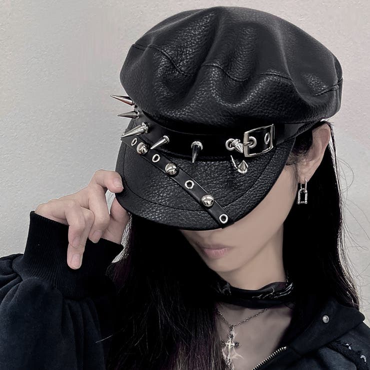 【10%OFFクーポン!11/27(木)1:59まで】ililil MAD MAD【マッドマッド】ピアスデザインハトメスタッズPUレザーキャスケット/全1色キャスケット PUレザー 帽子 ヴィジュアル系 V系 黒 ブラック メンズ パンク グランジ 地雷