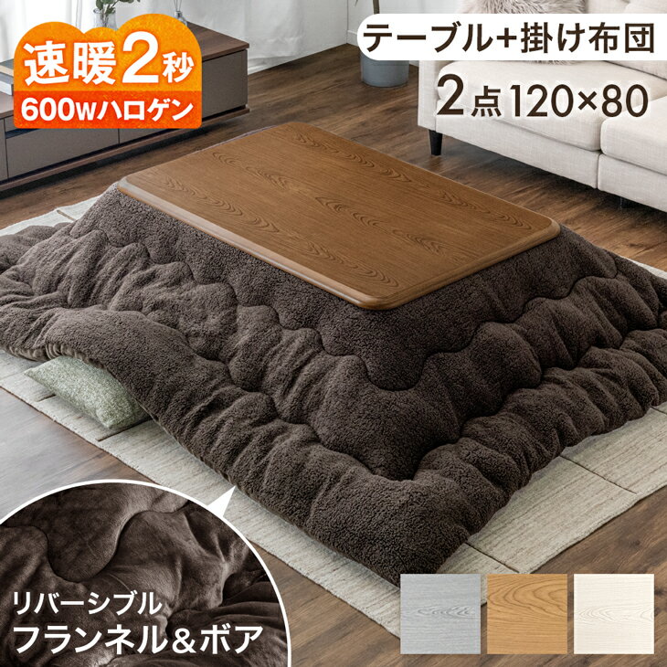 【4日19時半~LIVEエントリ-P5倍】 楽天1位 速暖2秒 ワンランク上の600Wハロゲンヒーター 手元コントローラー こたつ 【こたつテーブル + 掛敷布団 3点 セット 】 120×80 長方形 テーブル 木製 こたつ布団 コタツ 掛布団 敷布団 おしゃれ こたつセット長方形 こたつセット