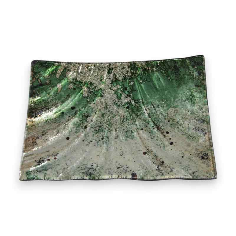 J-kitchens Nebula 皿 デザートプレート ガラス 長方形 小 グリーン ゴールド 15cm