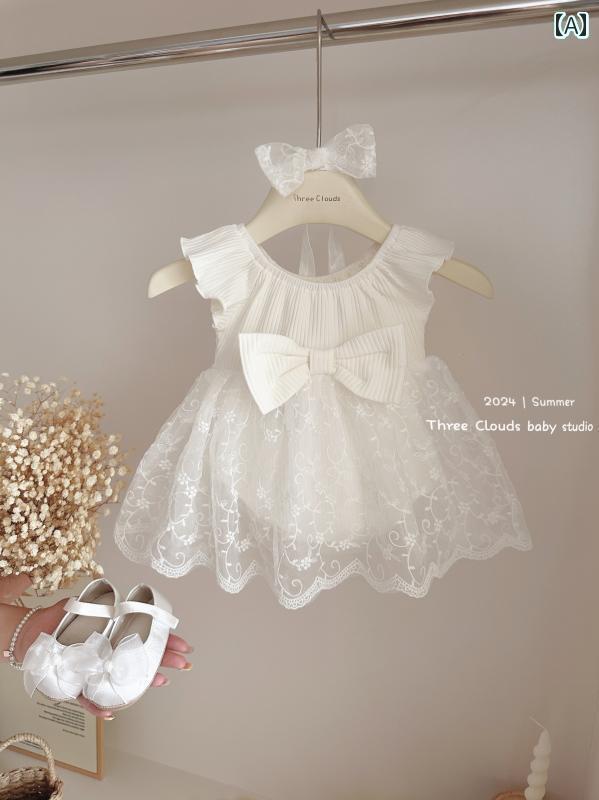 かわいい ドレス ベビー 1歳の 赤ちゃんの ドレス 満月 女の子 ファッション メッシュ フライング スリーブ 夏の プリンセス ガーゼ スカート
