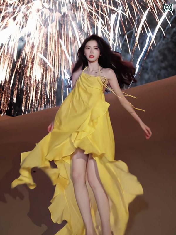 レディース トップス ホルターネック レディース トップス ホルターネック フェアリーの大きい 背中 開き ドレス 海辺の 休日の ロング スリング ホルターネック 魅惑的 モーニング ローブ フリルの ビーチ 女性