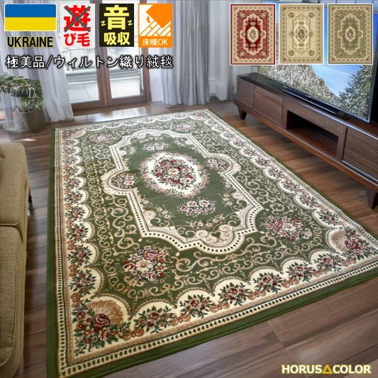 絨毯 じゅうたん おしゃれ 4畳 3畳 200×300cm ラグ カーペット ウィルトン織 緑 赤 グリーン レッド ベージュ リビング ダイニング ペットの爪も安心 送料無料 CNL【ロータス200×300】