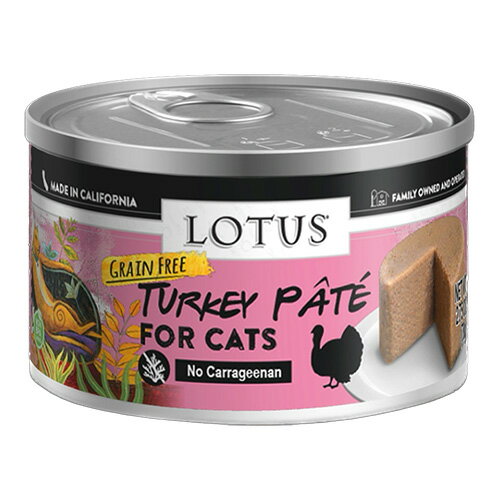 ※詳細は各アイコンをクリックしてください賞味期限素材ターキー、ターキースープ、ターキーレバー、エンドウ豆、ナチュラルフレーバー、寒天、リン酸三カルシウム、アサリ、ニュージーランド緑イ貝、フラックスシード、ブルーベリー、アスパラガス、ニンジン、クランベリー、乾燥卵、海塩、サーモンオイル(ミックストコフェロールで保存)、オリーブオイル、トリポリリン酸ナトリウム、塩化カリウム、昆布、硫酸カルシウム、タウリン、酸化マグネシウム、塩化コリン、ベタイン無水物、タンパク酸亜鉛、タンパク酸鉄、ナイアシン、ビタミンEサプリメント、チアミン一硝酸塩、タンパク酸銅、タンパク酸マンガン、亜セレン酸ナトリウム、パントテン酸カルシウム、ビタミンAサプリメント、リボフラビン、ピリドキシン塩酸塩、ビオチン、ビタミンB12サプリメント、ヨウ素酸カルシウム、ビタミンD3サプリメント、葉酸原産国アメリカ給与量体重別に1日当たりの給与量を表しています。 ・体重2.72kg…1.75缶 ・体重3.63kg…2.25缶 ・体重4.54kg…3缶 ・体重5.44kg…3.5缶 ・体重6.35kg…4缶●子猫、妊娠後期、授乳期の母猫には通常摂取量の2倍までの範囲を目安として1日数回に分けて与えてください。 ●給与量の目安を参考に、適切な体重を維持できるように適宜調節してください。常に新鮮な水が飲めるように与えてください。成分値粗タンパク質8%以上 粗脂肪4%以上 粗繊維1%以下 水分78%以下 オメガ6脂肪酸1.25%以上 オメガ3脂肪酸0.25%以上カロリー119.3kcal/100g備考◆【全年齢】に対応したウェットフードです。 ◆こちらの商品はAAFCO(米国飼料検査官協会)が定める分析試験の結果、総合栄養食の基準を満たすことが証明されています。 【知っておいていただきたいこと】当店では独自の安全基準を設け、原材料そのものの品質やパートナーへの安全性を確認できた商品だけを取り扱っています。商品形状のバラつきや商品導入スタンスについて詳しくはこちらをご覧ください。 【キャンセルについてご注意】 本商品はご注文タイミングやご注文内容によっては、購入履歴からのご注文キャンセル、 修正を受け付けることができない場合がございます。 (「発送予定日のお知らせメール」をお送りする前であれば、メール・お電話・ マイページにてご注文をキャンセルいただけます。)ターキーを主原料に、レバーや貝、果物を混ぜた滑らかな食感のパテ缶《総合栄養食》USDA(アメリカ農務省)の認証を受けたヒューマングレードの七面鳥肉を主原料に使用した、全年齢対応・総合栄養食の缶フードです。栄養価の高いレバーや貝、野菜や果物などを滑らかな食感になるように混ぜ合わせました。食材の風味が際立ってグルメなパートナー(愛猫)も大満足!トッピングとしてもおすすめです。滑らかなパテタイプのレシピ余分な水を加えず食材から出るスープのみで調理し、野菜や果物は粉末にして使用するなど、滑らかな食感を目指したパテ缶です。嗜好性の高いレバーやアサリや緑イ貝、昆布にチキンレバー由来のナチュラルフレーバーを使用することで、グルメなパートナー(愛猫)も大満足の一品になっています。一つひとつを作る愛情と品質に自信南カリフォルニアにあるロータス自社の小さな工場で作られたロータス缶は、USDA(アメリカ農務省)の認証を受けたヒューマングレードのお肉を主原料に使用し、パートナーへの愛情を込めて丁寧に作られています。豊富なラインアップロータス キャット缶は6種類のシチューレシピと7種類のパテレシピがありますので、パートナーの食の好みに合わせてお選びください。#202505