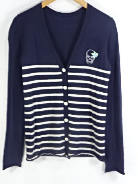 LUCIEN PELLAT-FINET ハイビスカス スカル ボーダー カシミヤ カーディガン ルシアン ペラフィネ ドクロ 大名店【中古】