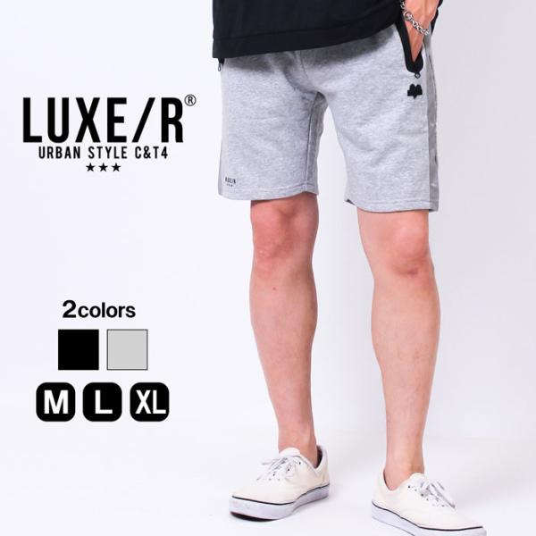 メンズ ショーツ LUXE/R 短パン 半パン ショートパンツ ラグジュ プリント 膝上 スウェット ロゴ ブランド 短め 30代 40代 オシャレ 春 夏 海 レジャー 涼しい