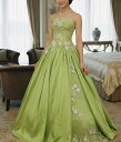 【即納】カラードレス ウエディング 演奏会用ドレス (グリーン) 7号9号11号13号 胸元の刺繍が美しい スカートのデザインが可愛い 大人 ロングドレス 発表会 コンクール Aライン 緑 mss (90910)