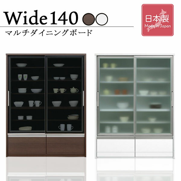 ダイニングボード 幅140 食器棚 スライド扉 国産 完成品 キッチン収納 収納家具 ホワイト 台所 食器棚 カップボード カトラリー おしゃれ ガラス扉 モダン シンプル