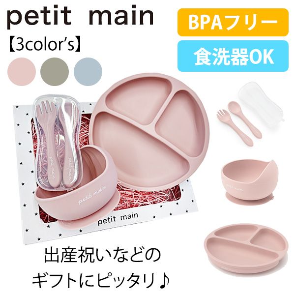 プティマイン【3点+箱付き】シリコン食器セット ギフトセット 食器 プレート ボウル カトラリー スプーン フォーク 皿 お椀 離乳食 出産祝い プレゼント ベビーグッズ 子供 ベビー 赤ちゃん petit main【9552460】【9552461】【9552462】