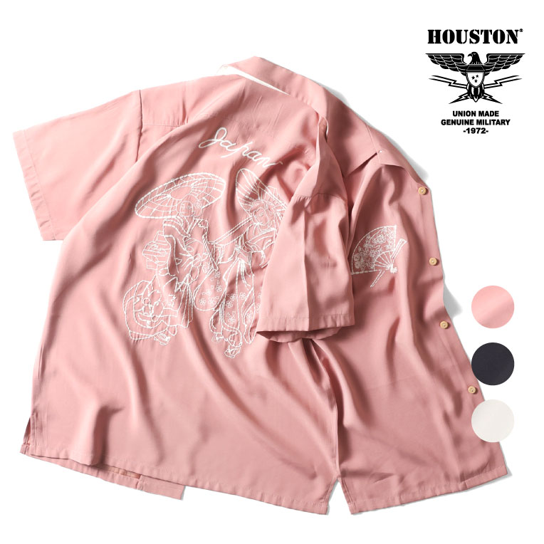 HOUSTON / ヒューストン 41156 SOUVENIR S/S SHIRT (MAIKO) / スーベニアシャツ -全3色- 刺繍 半袖シャツ 薄手 スカジャン スカシャツ メンズ ヴィンテージ カジュアル アメカジ 扇子 舞子 [41156]