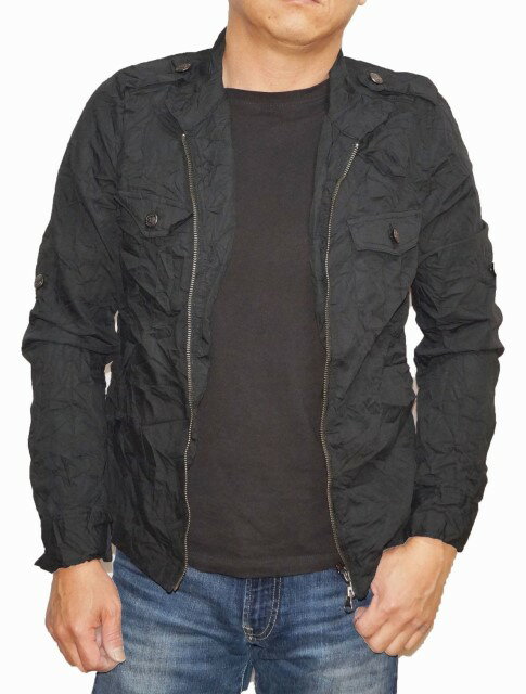マングローブ mangrove ジャケット ミリタリー 黒 しわ加工 メンズ 春物 薄手 ブラック