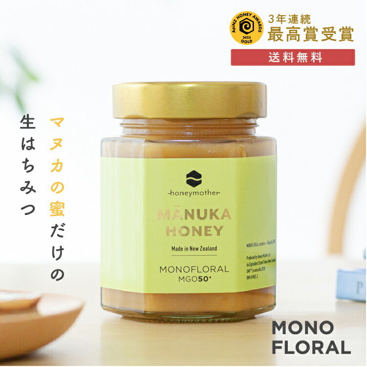 【最大20%OFFクーポン!11/27まで!】モノフローラル マヌカハニー 250g [MGO50+] はちみつ 非加熱 100%純粋 生マヌカ ハニーマザー オーガニック manuka マヌカはちみつ 生はちみつ ハチミツ 蜂蜜 ガラス瓶