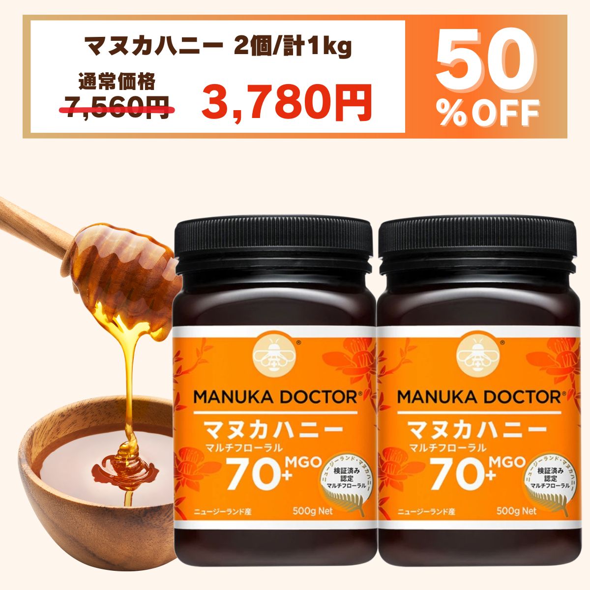 1個(500g)あたり1,890円 マヌカハニー 送料無料 【半額 12月4日20:00〜11日1:59 50%OFF 7,560円→3,780円】 MGO70+ 500g 2個 1,000g 1kg ニュージーランド マルチフローラル Manuka Doctor マヌカドクター 蜂蜜 ハチミツ はちみつ 非加熱