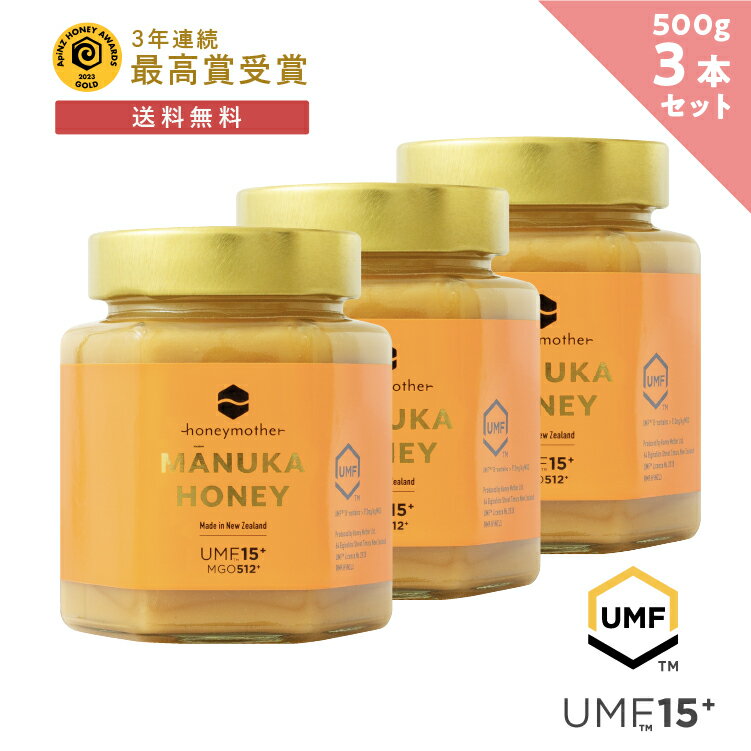 【最大1000円OFFクーポン!11/27まで!】 マヌカハニー UMF15+ 500g [3個セット MGO512+] はちみつ 非加熱 100%純粋 生マヌカ ハニーマザー オーガニック manuka マヌカ ハチミツ 蜂蜜 ガラス瓶
