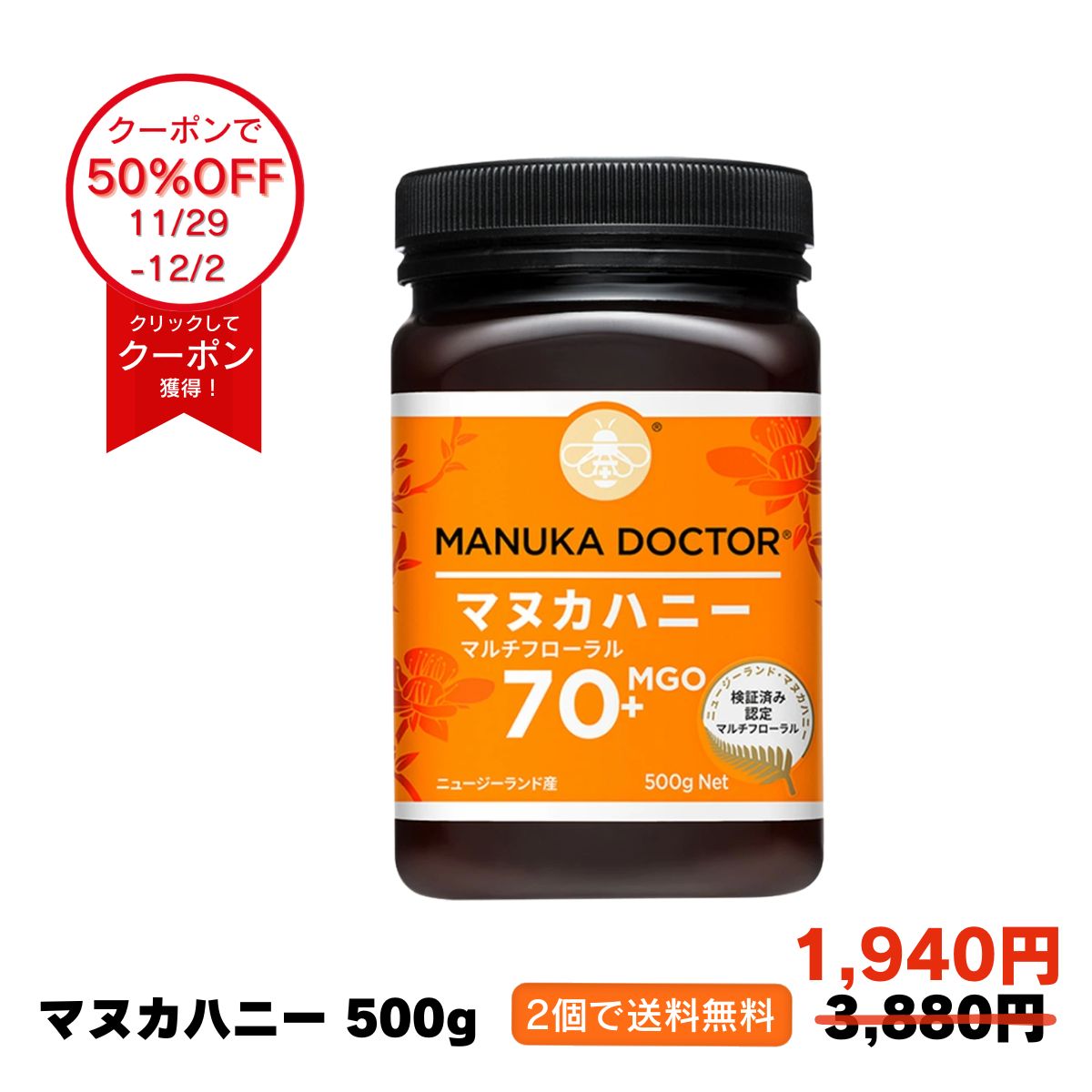 1個(500g)1,940円 マヌカハニー 2個以上購入で送料無料 【半額 11月29日20:00〜12月2日1:59 50%OFF クーポン利用で 3,880円→1,940円】 MGO70+ 500g ニュージーランド マルチフローラル Manuka Doctor 蜂蜜 ハチミツ はちみつ マヌカ 生はちみつ 非加熱