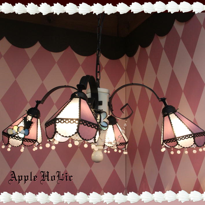 照明 おしゃれ かわいい シャンデリア ペンダントライト 4灯 シーリングライト ペンダントランプ ステンドグラス ランプ LED対応 パープル 不思議の国のアリス フラワー Apple HoLic 【 Maryanne メアリィアン 】