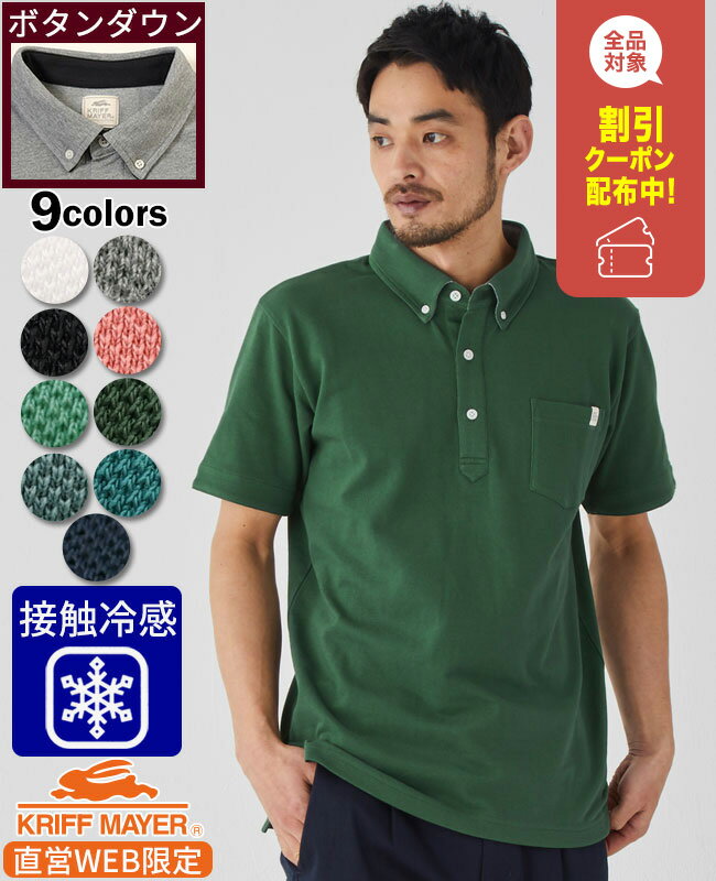 【ブランド直営】 《WEB限定》 ボタンダウン ポケット ポロシャツ メンズ 半袖 ポロ 父の日 プレゼント ギフト 接触冷感 プレーティング カノコ クールビズ オシャレ ブランド 綿 KRIFF MAYER MENS クリフメイヤー 【2025SS】 【ブラックフライデー 2025】