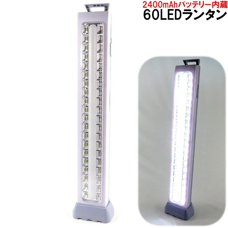 【koushin1114】sale 【koushin1114】free 【koushin1114】point 【koushin1201】夜釣りに!キャンプに!防災に! このLEDランタンひとつで20畳ほどの広さを明るく照らす事が出来ます。 熊本地震の際、同等商品を使って連日の停電が続く中 安心な夜を過ごす事ができました。 2400mAhの大容量バッテリー搭載の充電タイプ。 基盤直装のSMDLEDを60個装備し シーン応じて2モードのご利用が可能です。 ・モード1(40SMD直灯) より広い範囲を照射するのに適します。40個のLEDを点灯するので モード2よりバッテリー消費が早くなしますが、コンセントプラグ差し込みでの 駆動が可能です。 ・モード2(20SMD間接灯) 20個のLEDを使い、シェードを使った蛍光灯の様な照明で 眼に優しい発光モードです。SMD20個での駆動ですので バッテリー消費が少なく長時間お使い頂けます。 本体には収納タイプのグリップも付いておりナイトハイク等の持ち運びにも最適です。 また、ウォールライトととしてお使い頂けるフックホール付。 付属のスタンドを使えばデスクライトとしても使える 一台で大活躍のLEDランタンです。 【商品詳細】 本体サイズ :L445×W70×50mm(取っ手部分含まず) 本体重量 :約620g 内蔵バッテリー:2400mAh(1200mah×2) バッテリー寿命:約500回繰り返し充電可能 搭載LED :SMDチップLED60灯(直灯40個 蛍光灯形状内20個) 付属品 :スタンド×1 充電用コンセント ×1 充電時間 :約8〜10時間程度 利用可能時間 :3〜5時間程度(モード/気温により上下します) 【ご利用にあたって】 初期充電点灯テストを行った状態でお届けしておりますが お届け後、10時間程度の充電をお願いします。 バッテリー残量が少なくなると少しずつ暗くなります。 暗くなってきた場合、完全に消灯する前に再充電をお願いします。 完全に消灯するまで利用され放置されるとバッテリー寿命が短くなります。 また、2〜3ヶ月に一度満充電して頂くと バッテリー劣化が抑えられ、永くお使い頂けます。