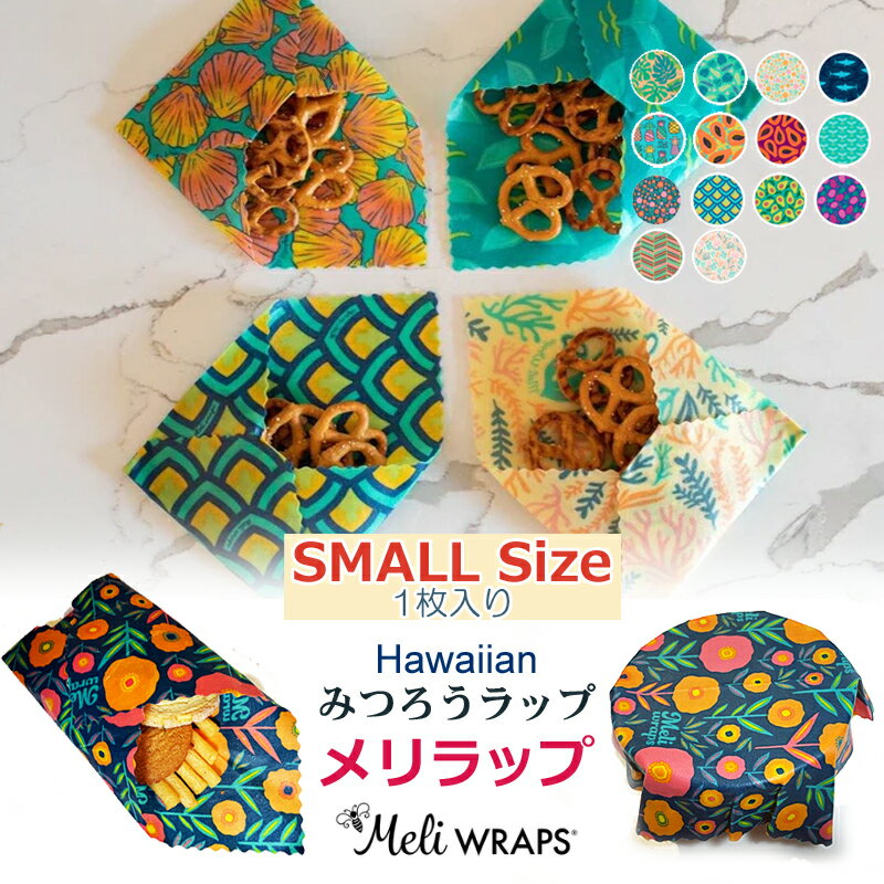 [Meli WRAPS] 【Sサイズ1枚入り】 メリラップ ハワイ みつろうラップ スモール サステナブル 送料無料 洗って繰り返し使えるラップ エコ オーガニック ハワイアン ラップ代用 食品保存 SDGs かわいい おしゃれ お弁当 保存容器 お菓子 プレゼント ギフト対応可