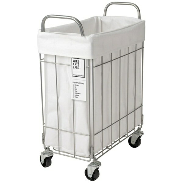 ■ラミネート加工を施しておりますが、手洗いが可能。■生地に汚れが付着しづらく、汚れた洗濯物などを入れても安心して使い続けることができます。■キャスター付きはお部屋間の移動も楽に出来るので、体にも負担を掛けることが無く、スムーズに運ぶことが出来ます。【用途】・ランドリー収納、小物、雑誌、新聞入れ、ぬいぐるみ、おもちゃ、ペットボトルなどのキッチン収納に。【仕様】・色: ホワイト・奥行(mm): 210・高さ(mm): 480・ハンドル高さ(mm): 約65・キャスター高さ(mm): 約70・仕様: キャスターのみ組み立て【材質/仕上】・ワイヤー: スチール、布袋: ポリエステル・コットン【注意】・※製品の性質上、布袋は折りじわが発生します。・※キャスターは組み立て式です。・※直射日光の当たる場所での使用は、商品の劣化を促進させます。・※洗濯後に風合いの変化、縮み、型くずれが発生しますが、使用上問題ありません。・※ハンドルを含む幅につきまして、溶接の角度によっては+1〜2cmの個体差があります。