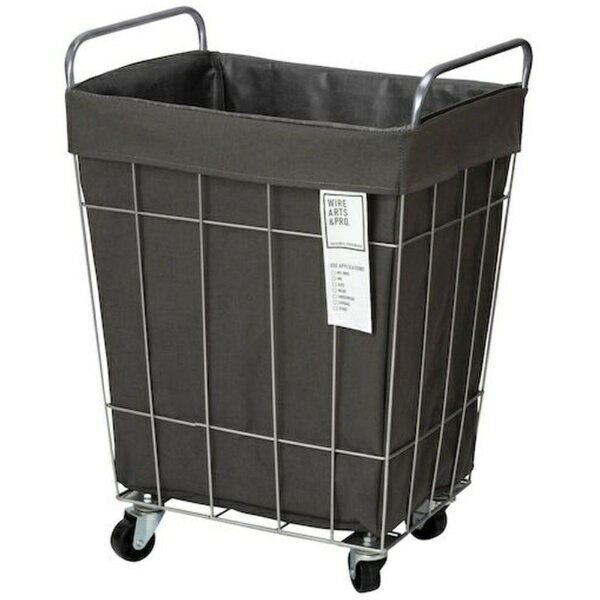 ■ラミネート加工を施しておりますが、手洗いが可能。■生地に汚れが付着しづらく、汚れた洗濯物などを入れても安心して使い続けることができます。■キャスター付きはお部屋間の移動も楽に出来るので、体にも負担を掛けることが無く、スムーズに運ぶことが出来ます。【用途】・ランドリー収納、小物、ぬいぐるみ入れ等に。【仕様】・色: ダークグレー・奥行(mm): 310・高さ(mm): 590・ハンドル高さ(mm): 約65・キャスター高さ(mm): 約70・仕様: キャスターのみ組み立て【材質/仕上】・ワイヤー: スチール、布袋: ポリエステル・コットン【注意】・※商品の性質上、折りじわが発生します。・※カバーをお洗濯する際は必ず手洗いをしてください。・洗濯機、乾燥機のご使用は避けて下さい。・※手洗いする場合、色移りや遊び毛が付着するのを防ぐため他の物と分けて単独で洗って下さい。・※カバーを乾燥させる際は洗濯後に弱く絞り、自然乾燥をしてください。