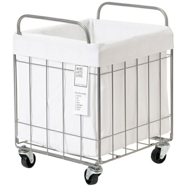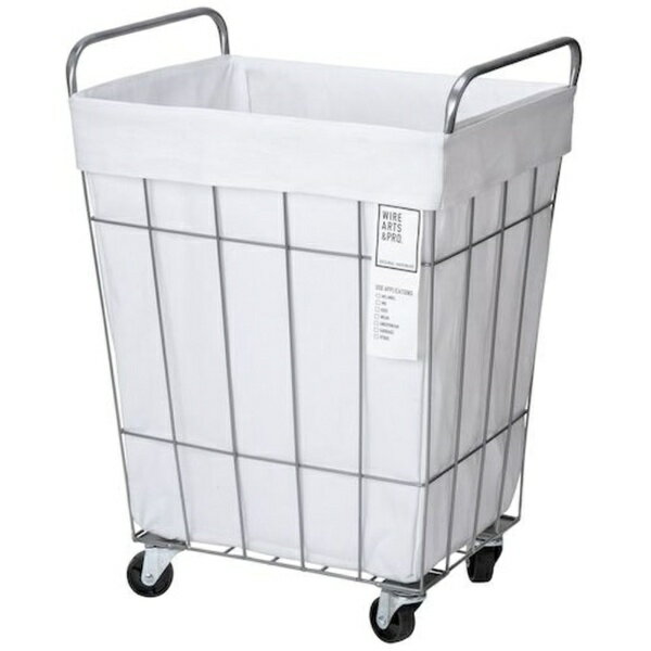 ■ラミネート加工を施しておりますが、手洗いが可能。■生地に汚れが付着しづらく、汚れた洗濯物などを入れても安心して使い続けることができます。■キャスター付きはお部屋間の移動も楽に出来るので、体にも負担を掛けることが無く、スムーズに運ぶことが出来ます。【用途】・ランドリー収納、小物、ゴミ箱、観葉植物の鉢カバーに。【仕様】・色: ホワイト・高さ(mm): 550・ハンドル高さ(mm): 約65・キャスター高さ(mm): 約70・仕様: キャスターのみ組み立て【材質/仕上】・ワイヤー: スチール、布袋: ポリエステル・コットン【注意】・※商品の性質上、折りじわが発生します。・※カバーをお洗濯する際は必ず手洗いをしてください。・洗濯機、乾燥機のご使用は避けて下さい。・※手洗いする場合、色移りや遊び毛が付着するのを防ぐため他の物と分けて単独で洗って下さい。・※カバーを乾燥させる際は洗濯後に弱く絞り、自然乾燥をしてください。