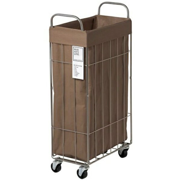 ■ラミネート加工を施しておりますが、手洗いが可能。■生地に汚れが付着しづらく、汚れた洗濯物などを入れても安心して使い続けることができます。■キャスター付きはお部屋間の移動も楽に出来るので、体にも負担を掛けることが無く、スムーズに運ぶことが出来ます。【用途】・ランドリー収納、小物、雑誌、新聞入れ、ぬいぐるみ、おもちゃ、ペットボトルなどのキッチン収納に。【仕様】・色: ブラウン・奥行(mm): 210・高さ(mm): 480・ハンドル高さ(mm): 約65・キャスター高さ(mm): 約70・仕様: キャスターのみ組み立て【材質/仕上】・ワイヤー: スチール、布袋: ポリエステル・コットン【注意】・※製品の性質上、布袋は折りじわが発生します。・※キャスターは組み立て式です。・※直射日光の当たる場所での使用は、商品の劣化を促進させます。・※洗濯後に風合いの変化、縮み、型くずれが発生しますが、使用上問題ありません。・※ハンドルを含む幅につきまして、溶接の角度によっては+1〜2cmの個体差があります。