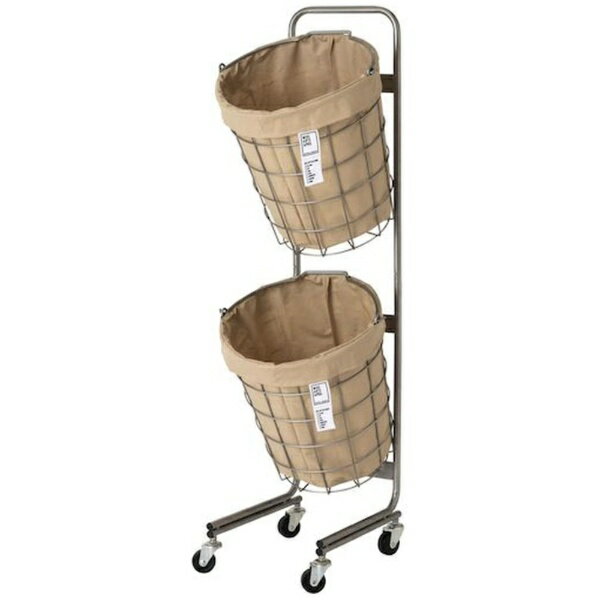 ■他のお部屋に比べ比較的狭く設計されている洗面脱衣ルームには、容量たっぷりの縦型2 段ランドリーバスケットが 効率よく活用できます。■季節によって使い方を工夫できたり、種類別にご使用できたりと、使い方の幅も広がります。■また、 バスケットにはそれぞれハンドルが付属しており、単品で持ち運ぶ事もできます。■スタンド下部のフロント部分が空いている ので、すっきりとした印象を与えてくれるランドリーバスケットです。【用途】・洗濯の分別やリビング収納等に。【仕様】・色: ベージュ・奥行(mm): 420・高さ(mm): 1150・バスケット直径(mm): 350・バスケット高さ(mm): 380・キャスター高さ(mm): 約70・仕様: 脚/キャスター組み立て【材質/仕上】・ワイヤー・スタンド: スチール、布袋: コットン【注意】・※カバーは商品の性質上、折りじわが多少発生します。・予めご了承ください。・※カバーをお洗濯する際は必ず手洗いをしてください。・洗濯機、乾燥機のご使用は避けてください。・※手洗いする場合、色移りや遊び毛が付着するのを防ぐため他の物と分けて単独で洗ってください。