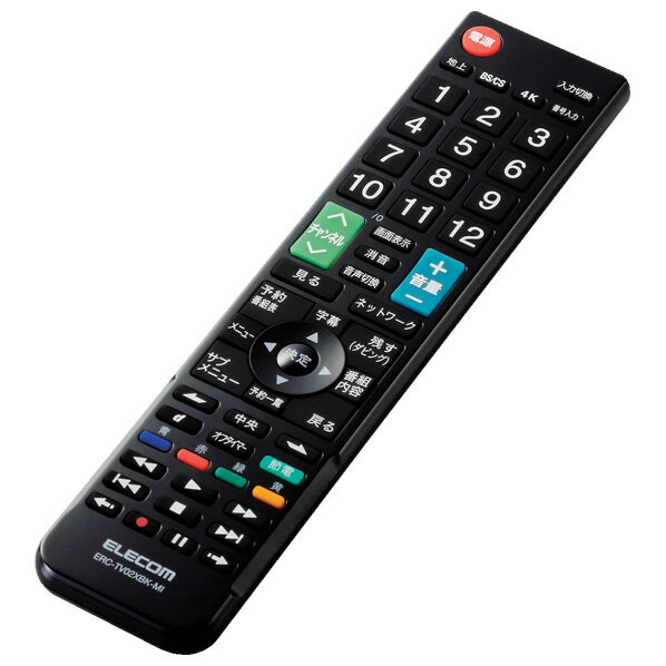 -------------------------------------------------------------- 画像はイメージです。 ※ PC環境により実際の色味や質感と異なって表示される場合がございます。 ※ 部品・パーツなどの一部の商品では本体の商品画像を使用しております。 ※ 製品の仕様・画像・パッケージは、メーカー側から予告なく変更される場合があります。 -------------------------------------------------------------- オートターンボタンにも対応!充実なボタン数で、純製品に近い感覚で使えるかんたんTV用リモコン。(三菱製テレビ REALに設定済み)■三菱製テレビ REALに設定済みで、登録作業をすることなくそのまま使えるかんたんTV用リモコンです。■純正リモコンのボタン表示と配置を踏襲しており、分かりやすく、違和感なく使用可能です。■オートターンボタンにも対応し、充実した機能を搭載しています。■関連するボタンを分かりやすくレイアウトし、直感的に操作可能です。■数字キーと十字キー、それぞれの背面にくぼみを設置し、どちらも押しやすいダブルホームポジション設計です。■リモコン操作時に多い3つの使い方(つまんで操作、握って操作、置いたまま操作)に対応しています。■チャンネルの操作など、リモコンをつまんで操作するときには、側面のくぼみに指を引っ掛けることができ、快適に操作可能です。■録画視聴の操作など、リモコンを握って操作するときには、背面のくぼみが人さし指にフィットしリモコンを支えることで快適に操作可能です。■音量調節など、リモコンを置いたまま操作するときも自然と指になじむボタン形状で、快適に操作可能です。■ボタンには押し心地の良いメタルドームを採用し、ボタンを押したときに抜群のクリック感を実現しています。■手の小さな人でも操作しやすい長さ212mmサイズを採用しています。■広範囲で認識しやすいように、信号LEDを2つ搭載しています。■テレビ本体との動作確認済みなので、安心してご使用いただけます。※対応状況は対応表をご確認ください。【仕様】対応機種:液晶テレビ(三菱製)通信方式:赤外線(IR)方式ボタン数:60ボタン外形寸法:幅約49mm×高さ約212mm×厚さ約25mm電源:DC3V 単四形乾電池2本(別売)想定電池使用期間:約1年間(アルカリ乾電池使用時)※使用頻度により変化します。付属品:取扱説明書保証期間:1年間カラー:ブラック 【メーカー・ブランド】 エレコム / えれこむ / ELECOM 【#1】