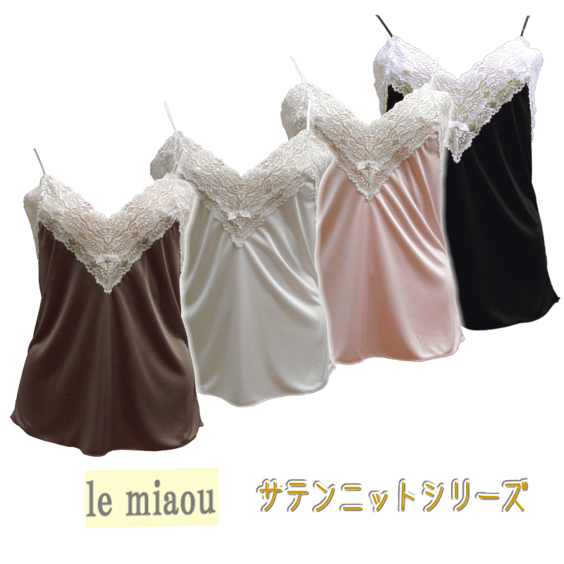 日本製 le miaou (ルミャウ)サテンニットシリーズキャミソール Mサイズ #2585美しく華やかヨーロッパ風デザインレディース 下着 インナー キャミソール