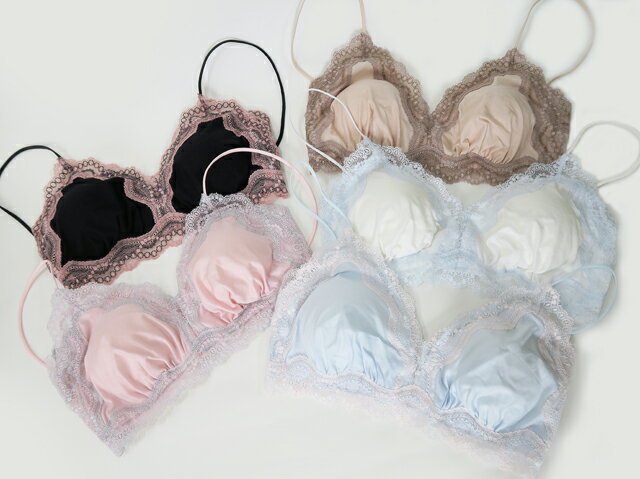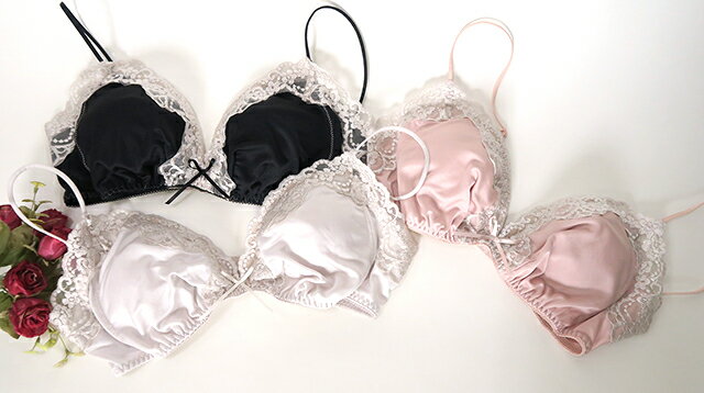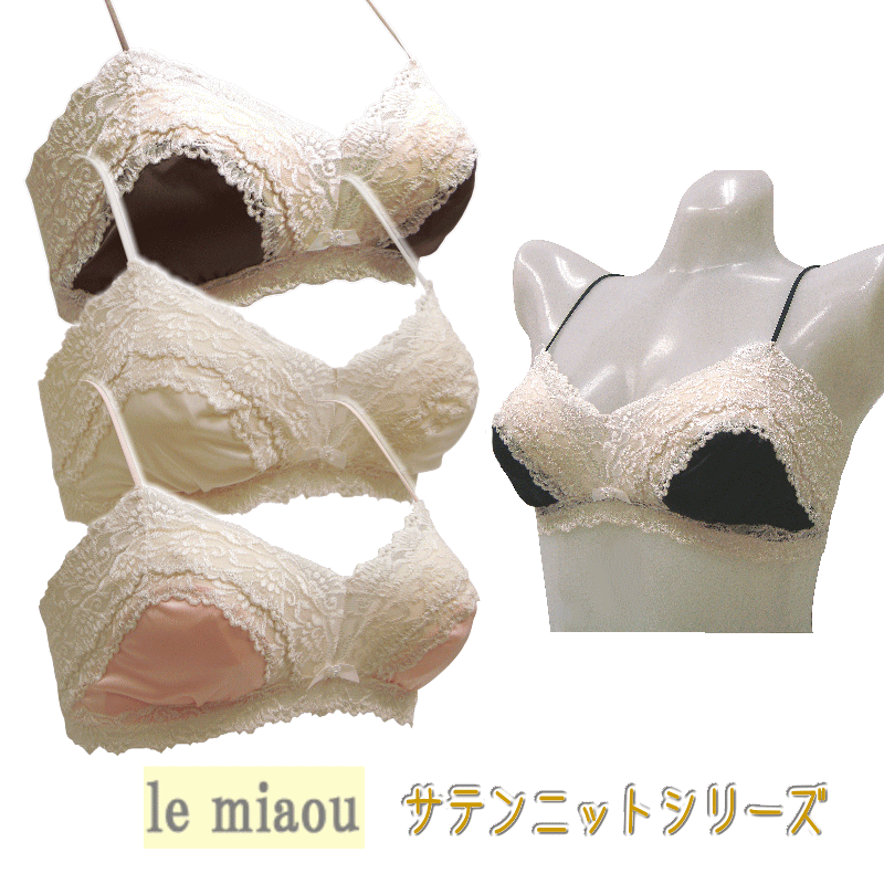 日本製 le miaou (ルミャウ)サテンニットシリーズソフトブラジャー Mサイズ #0585美しく華やかヨーロッパ風デザインレディース 下着 インナー ソフトブラ ノンワイヤー締め付けない ノンストレス リラックス おやすみブラにも