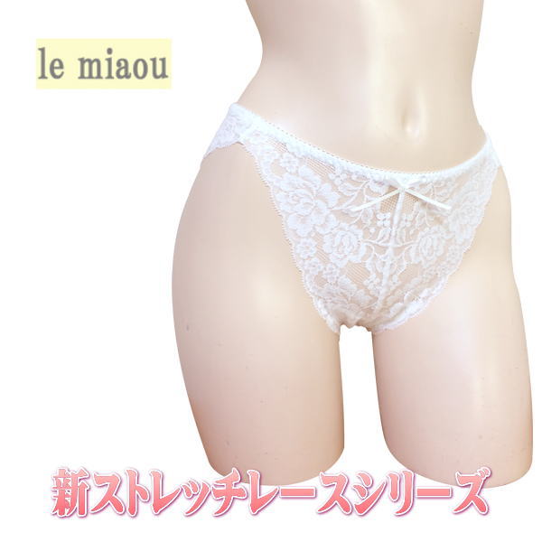 日本製 le miaou (ルミャウ)新ストレッチレースシリーズスタンダードショーツ Lサイズ #5665ボディーぴったりフィットレディース 下着 インナー ショーツ お尻すっぽり 総レースアウターにラインが響きにくいショーツです