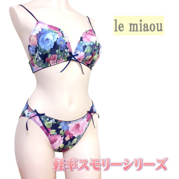 日本製 le miaou (ルミャウ)軽密スモリーシリーズ三角ソフトブラジャー ショーツ セットMサイズ #0659 #5659羽のように軽い生地に華やかな柄が素敵レディース 下着 インナー ソフトブラ ノンワイヤー ブラ&ショーツ ブラセット