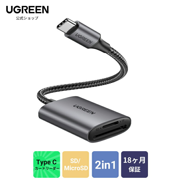UGREEN typec sdカードリーダー typec TF SD 2in1 USB3.0 高速 OTG対応 UHS-I MicroSD USBカードリーダー カードリーダー typec sdカードリーダー typec type-c 高速データ転送 カメラ パソコン スマホ sdカード 挿すだけ typec写真転送